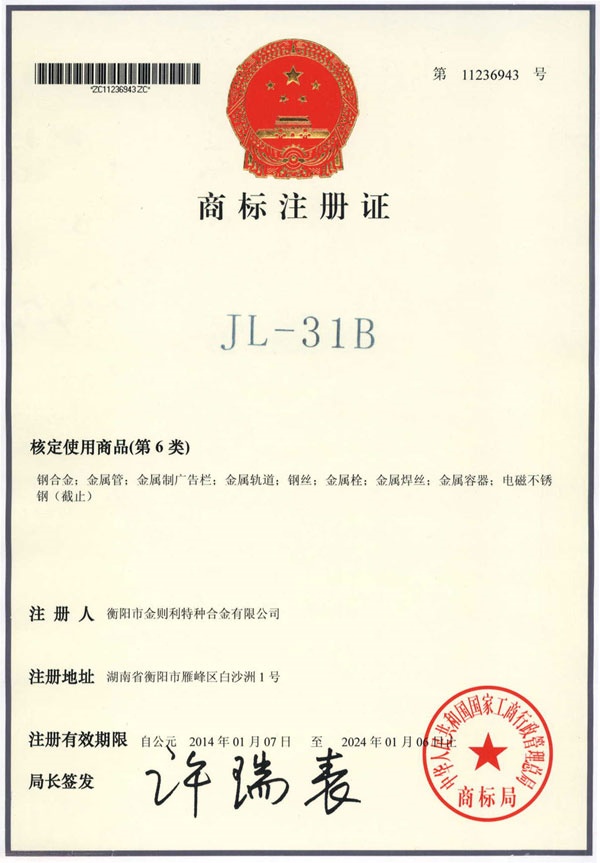 衡陽市金則利特種合金股份有限公司成立于一九九九年十二月,注冊資本人民幣兩千兩百萬元。注冊地址:衡陽市雁峰區白沙洲工業園長塘路2號。公司主營耐蝕軟磁合金,為湖南省高新技術企業。公司自成立以來,即致力于耐蝕軟磁合金的研發。 研制出的JL-31(00Cr13si2Pb)、JL-31B(00Cr13si2)、JL-31BS(00Cr13Si2S)、JL-37B(0Cr17Si2)、JL-37(0Cr17···